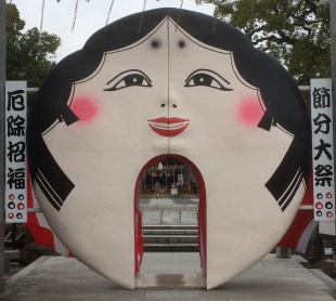 お隣の正八幡宮に、毎年恒例のおたふくさんが登場しています。